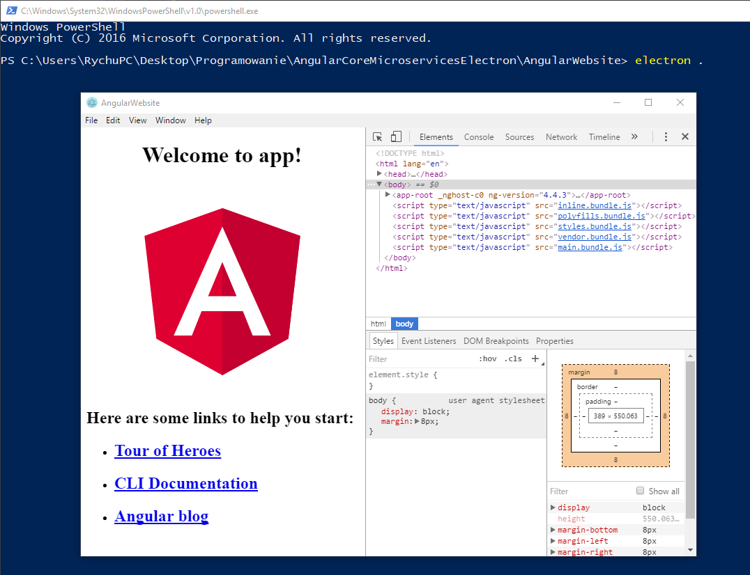 In this step we will install the latest version of electron inside the root folder of the angular 8 project. The electron framework lets you write cross platform desktop applications using javascript html and css. With electron creating a desktop application for your company or idea is easy.