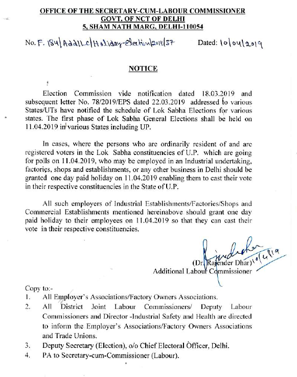 Knowledge Blog On Indian Labour Law And Human Resource Advocate Girish Jayram Vivalkar Election 2019 Holiday Notification For Delhi Orange County Voter Information Guide